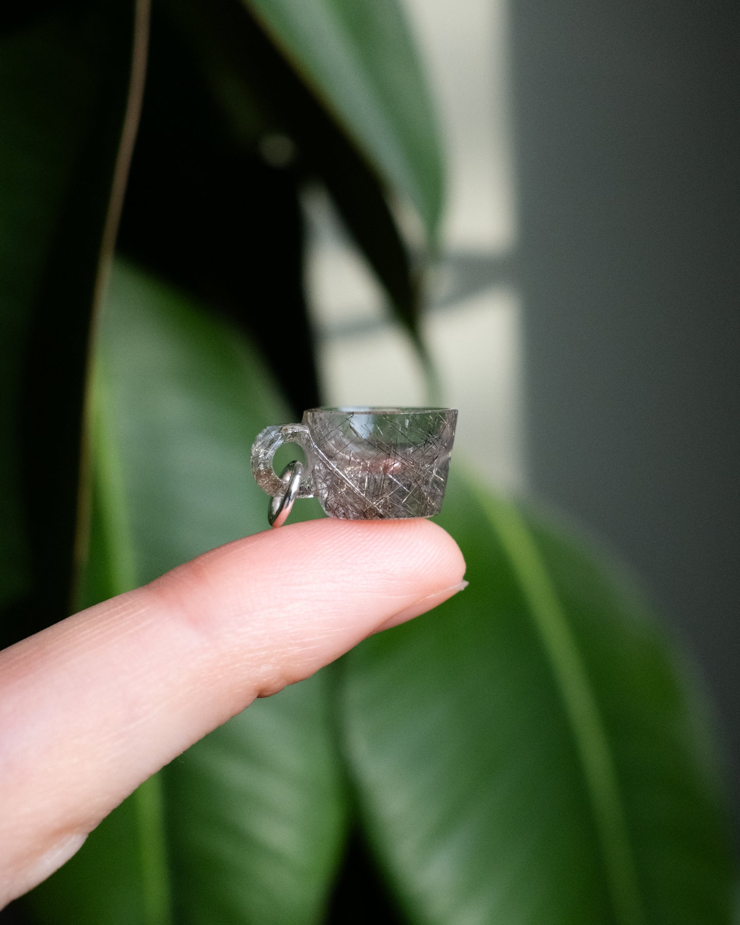 ☕️ Birthed from my love of coffee, ceramics, and jewels. This teeny tiny mug pendant is hand carved from stunning silver rutilated quartz, and comes on your choice of recycled sterling silver or 9ct gold. There's a variety of chain options, so do spend a moment finding your ideal length and chain.