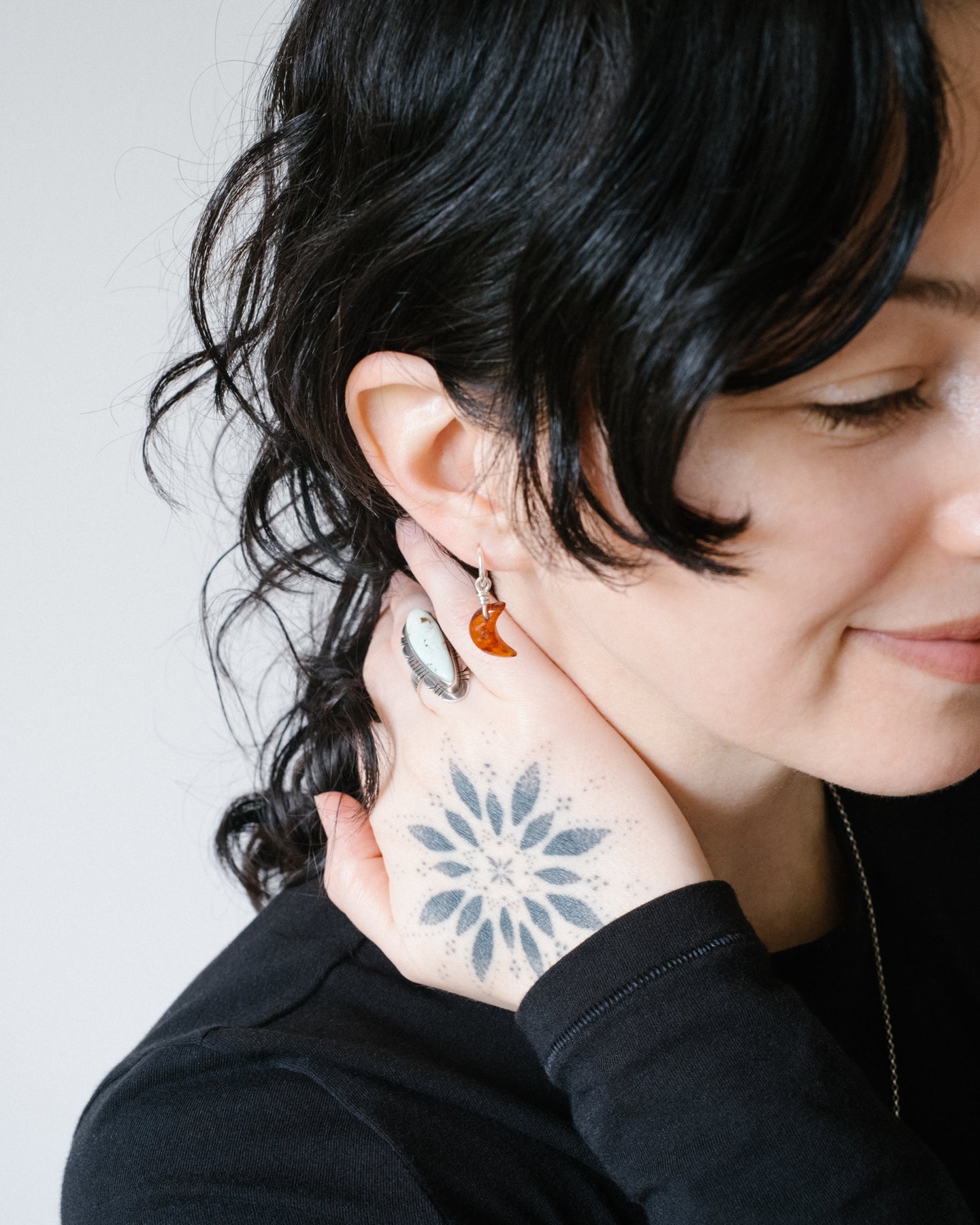 Julie Sandover I love these beautiful and unusual little earrings! So clever to match the stunning grossular garnet crescent moon with the twinkly reticulated silver star, it’s a mystical combination, I totally love it. Beautifully handcrafted and perfect in every way!