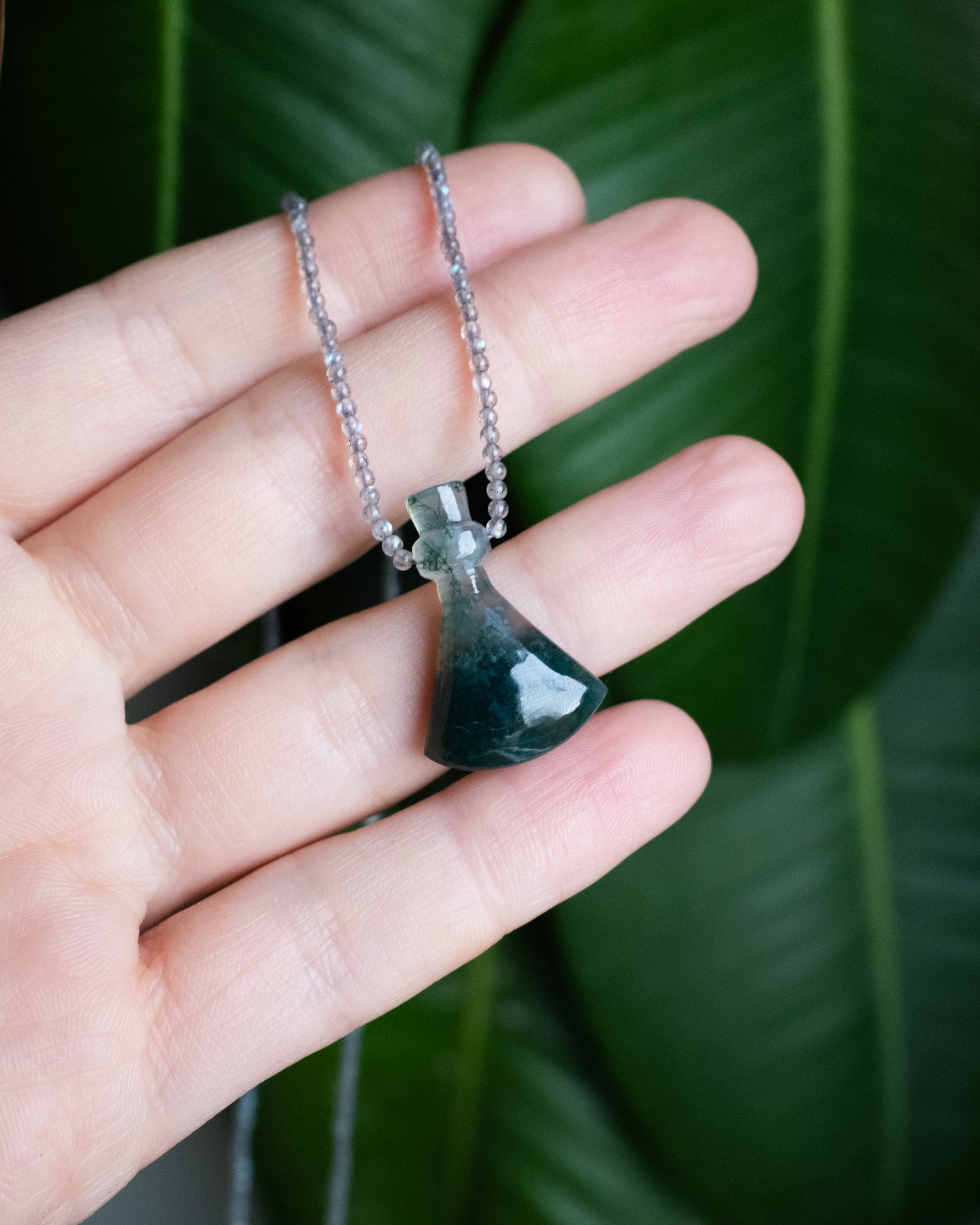Potion for Woodland Dreaming: Midnight Blue Labradorite & Moss Agate Beaded Necklace - The Healing Pear