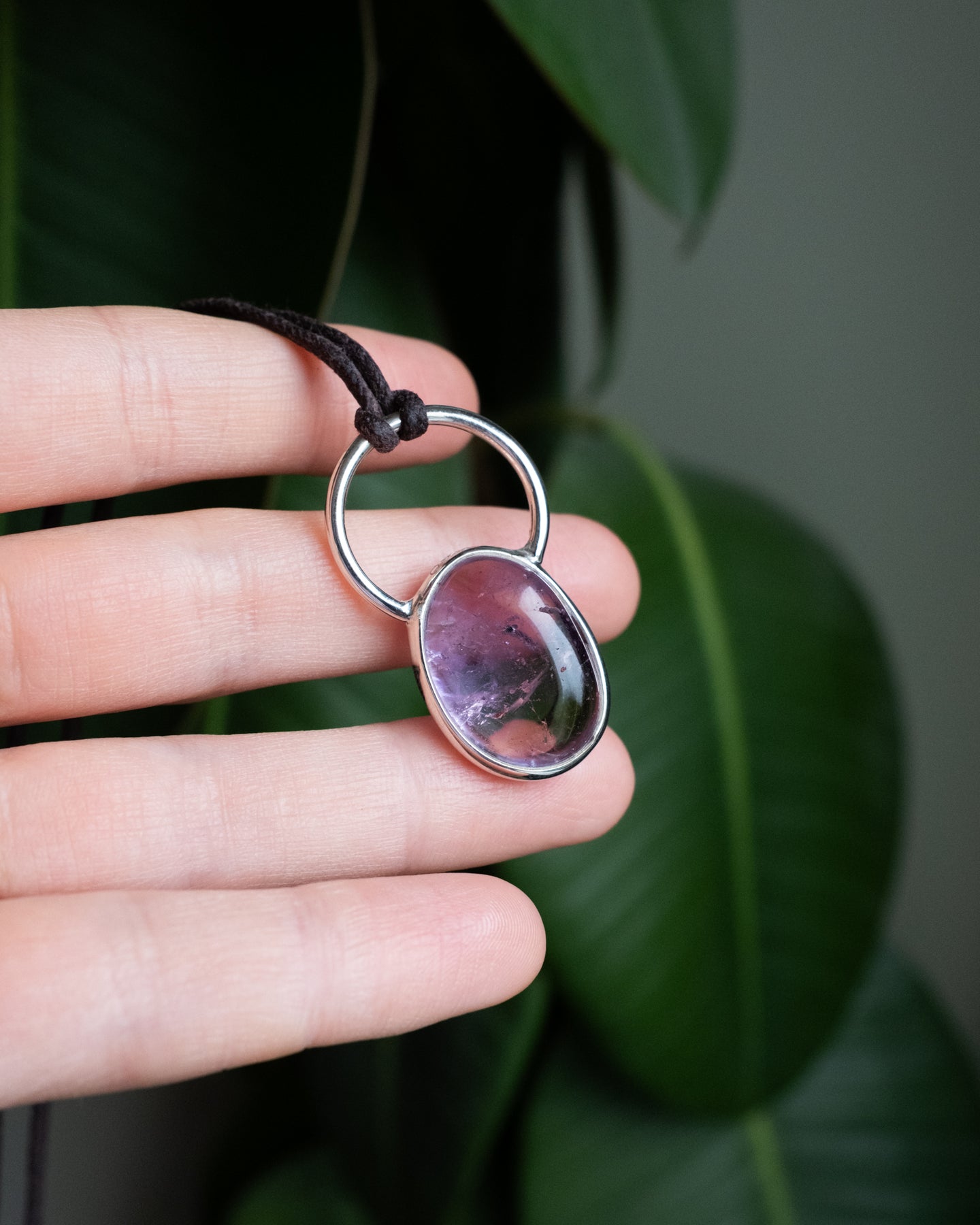 Powerful ametrine pebble pendants that are double sided and very tactile; made to be used as worry stones to soothe the wearer.