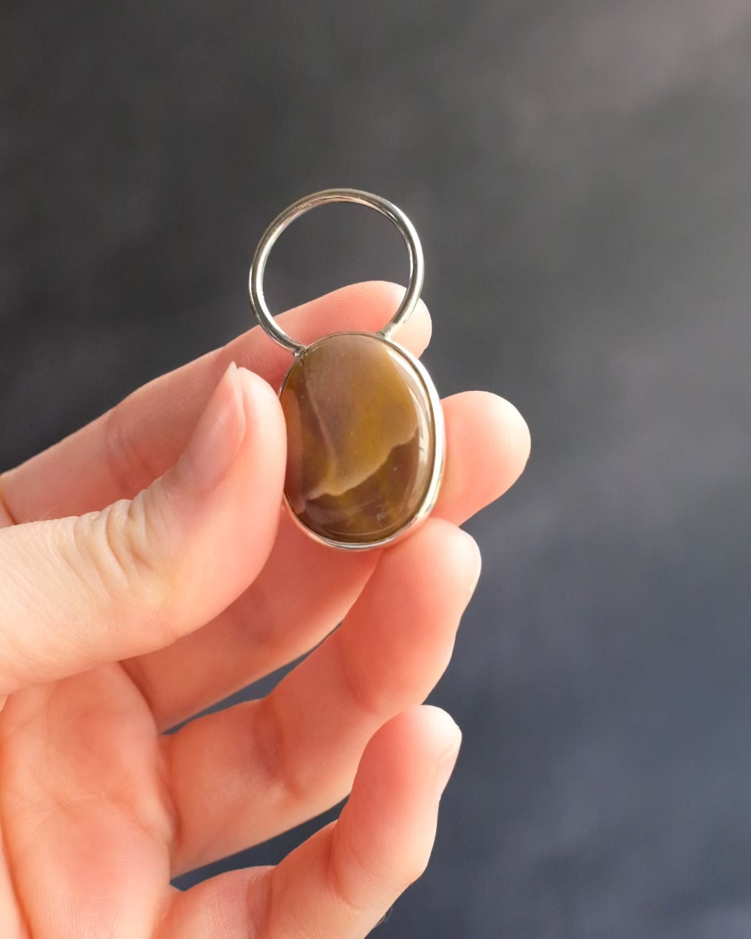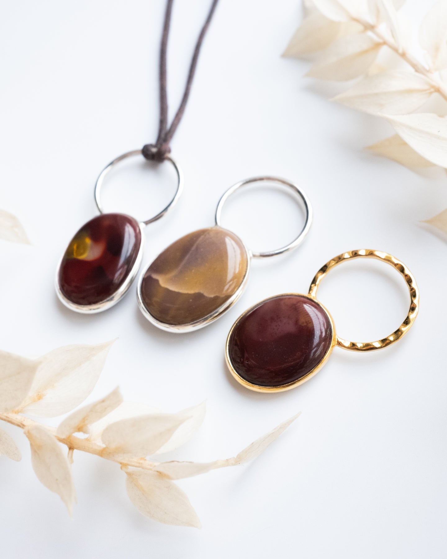 Powerful mookaite jasper pebble pendants that are double sided and very tactile; made to be used as worry stones to soothe the wearer.