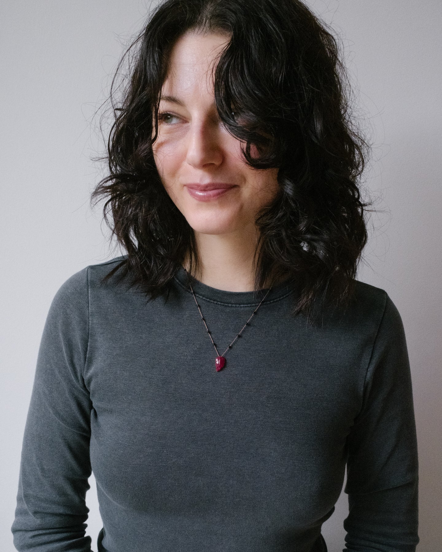 Tanzanian Ruby Hand Carved Leaf Beaded Necklace