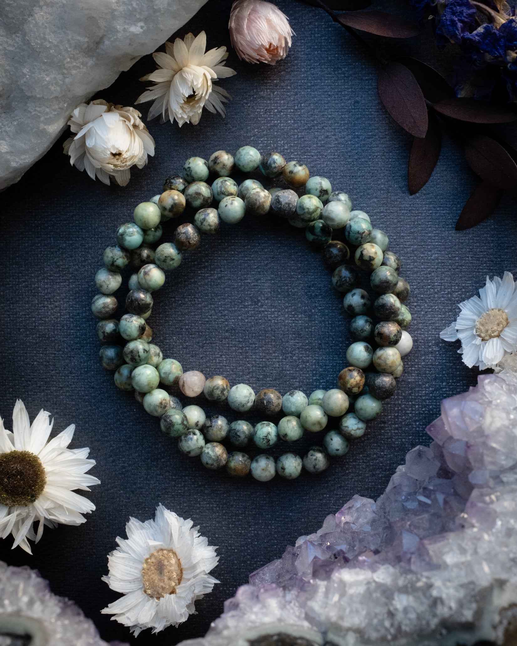African Turquoise Round Bead Bracelet 8mm - The Healing Pear