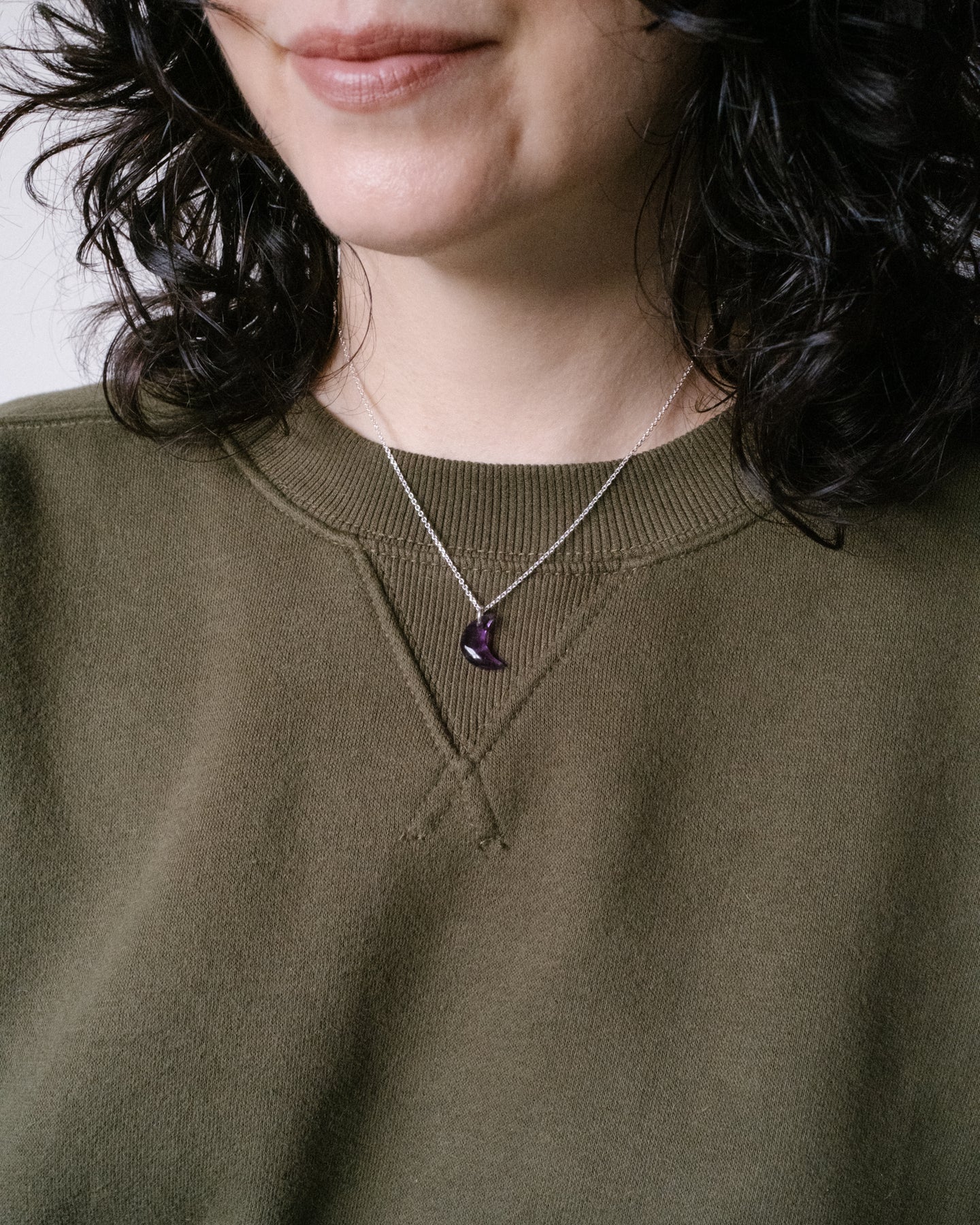 Amethyst Crescent Moon Recycled Sterling Silver or Gold Necklace