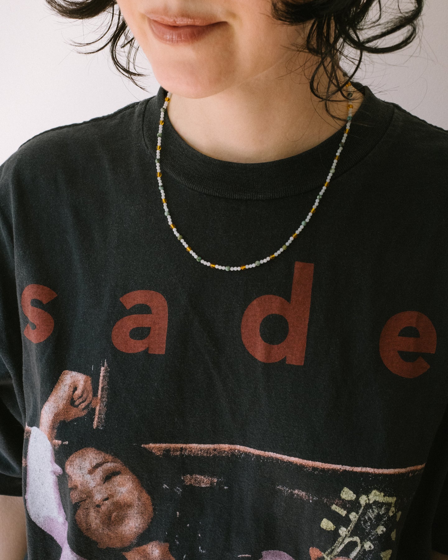 This beaded satellite necklace includes baltic amber and carnelian. Lovely for layering or wearing on its own. Finished with recycled sterling silver fastenings.