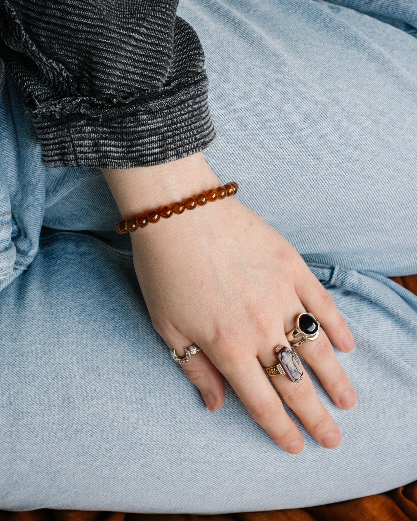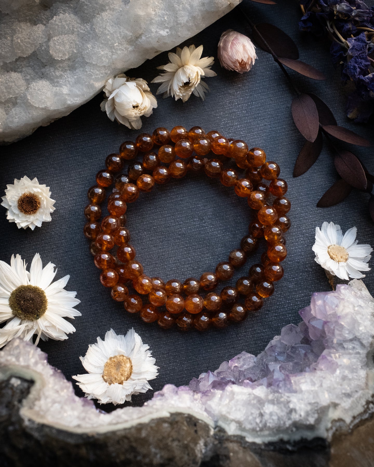 Simple and energetic hessonite garnet bracelet, for courage and steady transformation. Great for stacking or wearing on its own.