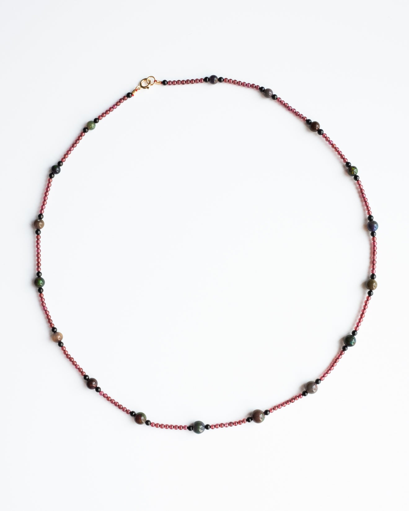 Black Opal, Garnet & Black Spinel 9ct Gold Beaded Satellite Necklace