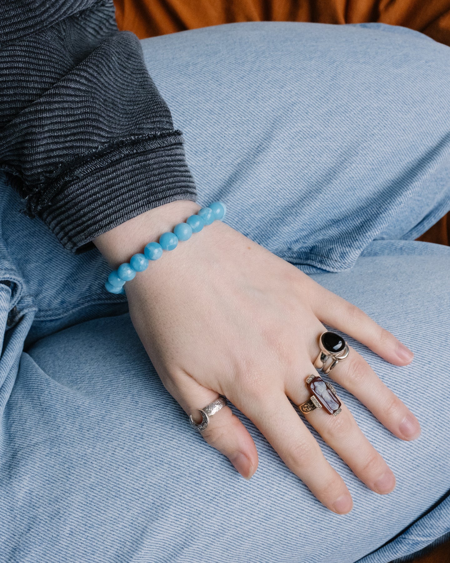 Aqua Blue Imperial Jasper Round Bead Bracelet 8mm