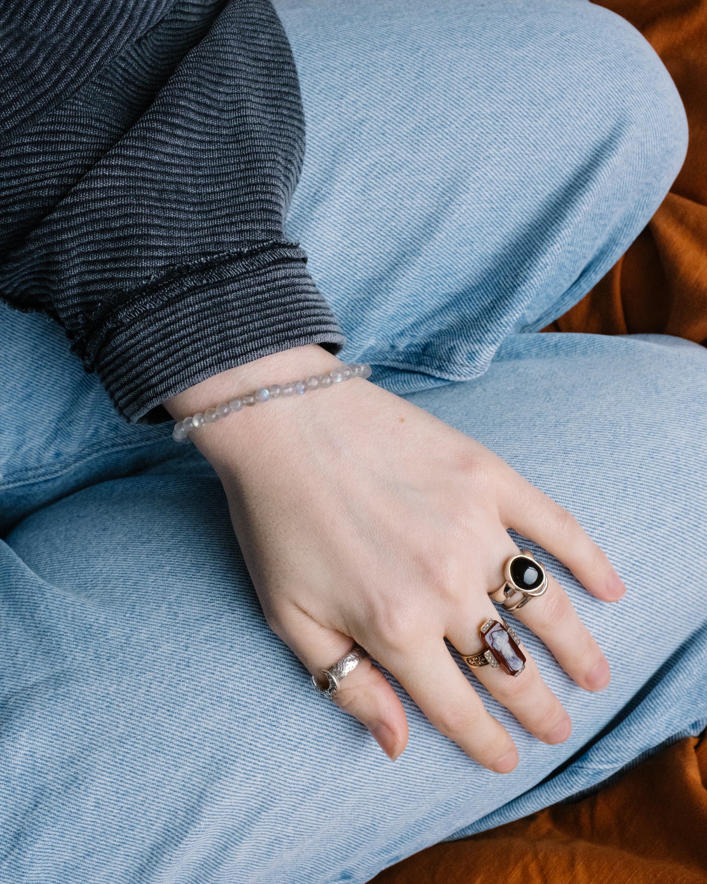 Simple and energetic labradorite bracelet, for those high vibes of happiness and protection. Great for stacking or wearing on its own.