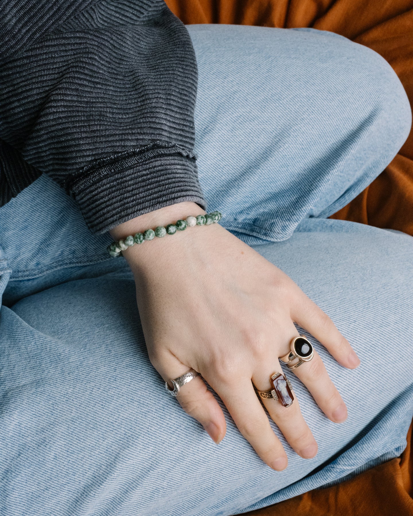 Simple and energetic tree agate bracelet, for inner peace, resilience, and a deeper bond with nature. Great for stacking or wearing on its own.